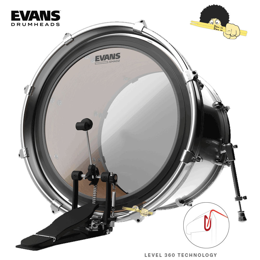 Pele para bumbo 22″- Evans Emad2 Clear com 2 Anéis Abafadores e Filme Duplo