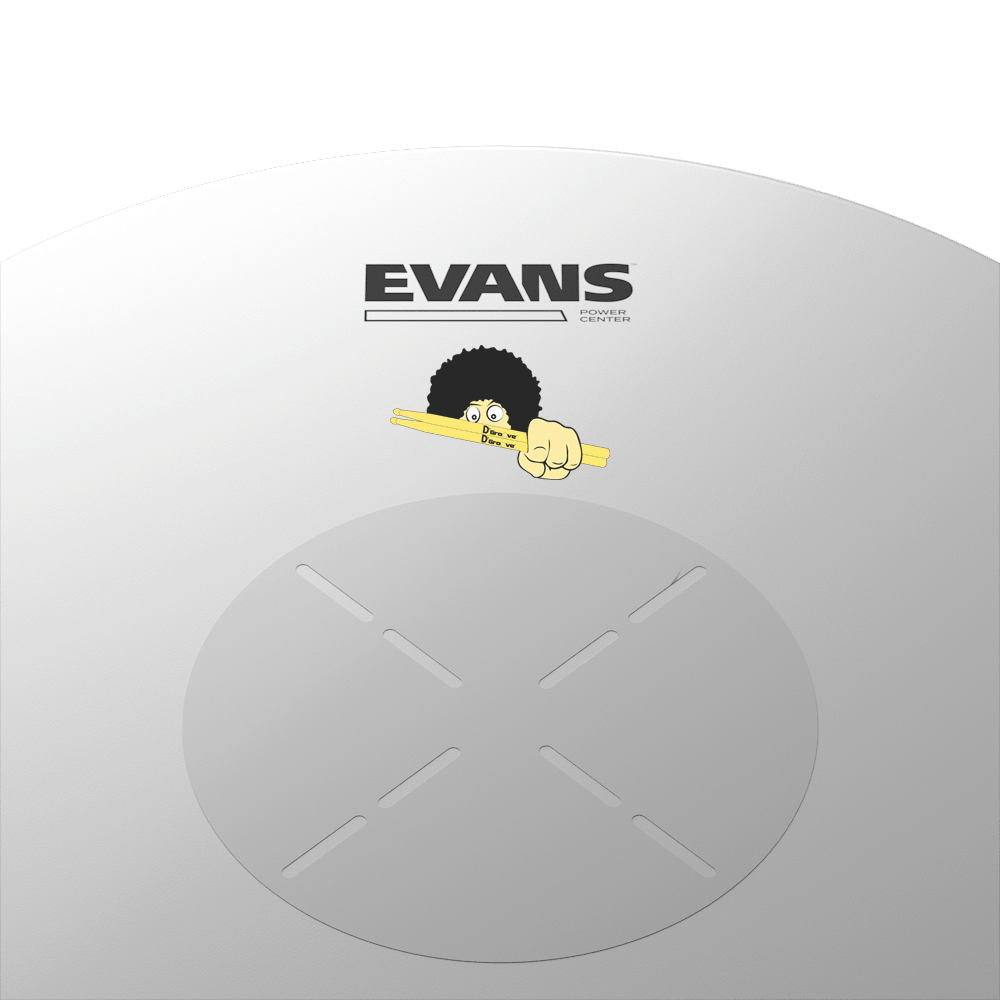 A Evans Drumheads esta presente no mercado há mais de 40 anos, e constituem a mais concisa descrição de uma empresa, que, décadas atrás, foi a pioneira no design e na produção de peles para percussão e hoje é uma inovadora. A maioria das pessoas desconhece que a Evans inventou a pele sintética – seja de plástico ou poliéster – em 1956. Chick Evans (fundador) foi o primeiro a utilizar filme de poliéster para moldar com sucesso, uma pele de percussão, obtendo uma pele resistente às variações climáticas e transformando o mundo da percussão para sempre. Ou seja: Evans foi A Primeira! E também é o sinônimo do futuro em peles para bateria e percussão. A Pele Power Center é uma pele de camada simples com 0,25mm de espessura. Com a aplicação de um adesivo central com 0,13mm de espessura e 5″ de diâmetro oferece maior durabilidade e definição, orifícios especiais neste adesivo permitem maior flexibilidade, mantendo a pele aberta na borda
