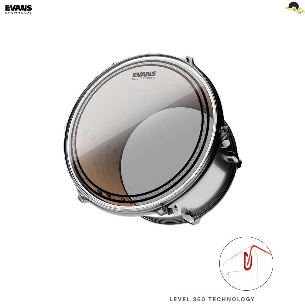A Evans Drumheads esta presente no mercado há mais de 40 anos, e constituem a mais concisa descrição de uma empresa, que, décadas atrás, foi a pioneira no design e na produção de peles para percussão e hoje é uma inovadora. A maioria das pessoas desconhece que a Evans inventou a pele sintética – seja de plástico ou poliéster – em 1956. Chick Evans (fundador) foi o primeiro a utilizar filme de poliéster para moldar com sucesso, uma pele de percussão, obtendo uma pele resistente às variações climáticas e transformando o mundo da percussão para sempre. Ou seja: Evans foi A Primeira! E também é o sinônimo do futuro em peles para bateria e percussão. As peles EC2 possuem o anel de abafamento com SST na parte inferior de dois filmes de 7 mil. Controlando a vibração da borda (ao invés de eliminá-la), o anel isola e abafa os harmônicos mais agudos, aprimorando os graves e o ataque, além de proporcionar maiores possibilidades de afinação. A Sound Shaping Technology possibilita controlar a espessura e a densidade do anel, além de sua largura. Controlar a posição e a massa do anel permite remover frequências selecionadas para otimizar o ataque, a sonoridade, o sustain e ajuda a facilitar a afinação para cada medida de pele, podendo oferecer um som mais balanceado e pré equalizado por todo o kit. O som desta pele é definido, denso, acentuado, com ataque nítido em todas as afinações.